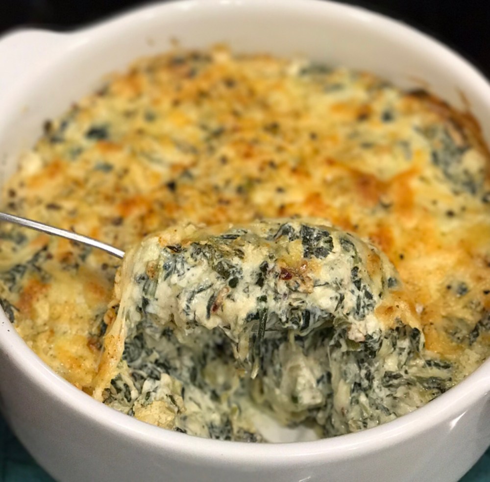 Is there any better game day snack than Spinach and Artichoke dip? Yes. Jalapeno Spinach and Artichoke dip. I’ve been making my own recipe for years, but always tweaking it as I go and adding jalapeño seemed like a no brainer. Tonight is one of the first cool Bay Area nights, the kind where it feels like it could thunderstorm at any moment (rain would be totally welcome to calm down these horrendous Nor Cal fires). Tonight called for a lemongrass chicken pho from The Defined Dish and a little dip starter to warm us up. Lately I’m not used to making such heavy dishes since switching to a healthier, primarily Paleo or Whole30 diet, but some comfort foods will never lose their place with me. #youcantakethegirloutofindianabut….